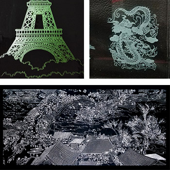 材料: 花崗石、大理石、紙張、皮革布料、亞克力、塑料 、 水晶、玻璃、工藝品、竹木制品等非金屬。